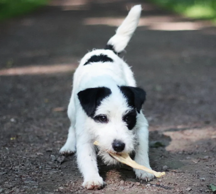 Wir empfehlen deinen Hund beim Kauen zu beaufsichtigen und gegebenenfalls kleinere Reststücke beiseite zu nehmen.